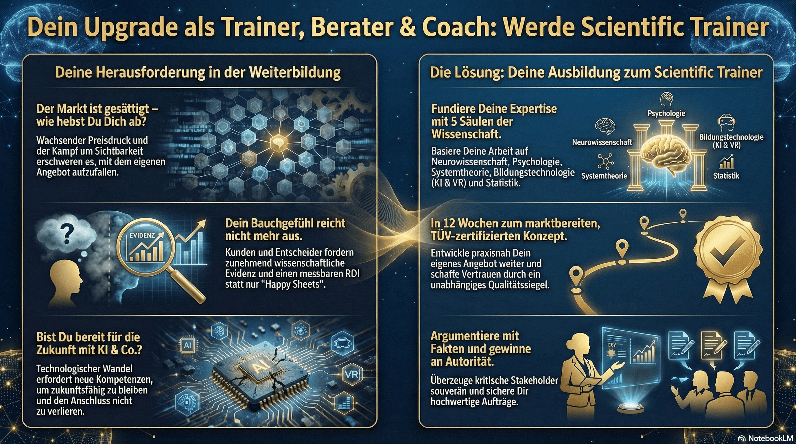 Von “einem Dienstleister unter vielen” zum Scientific Trainer: krisenfest und zukunftsweisend mit zertifizierter empirischer Fundierung & aktueller Kompetenz in KI und Bildungstechnologien!